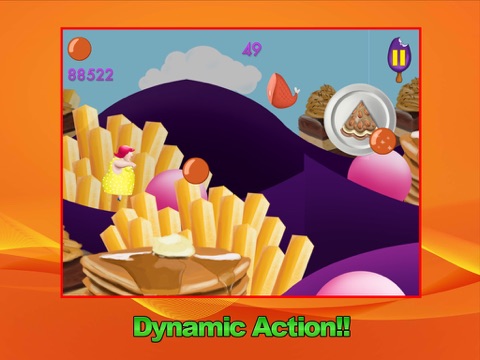 Travel through the Land of Goodies, where hills and mountains of Fries and Cakes surround you, and Chocolate flows!