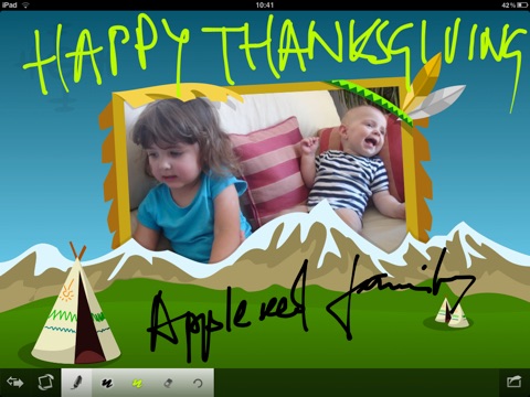 This app allows you to create beautiful Thanksgiving photo cards using pictures from your own photo library, and personalize them using new ink technology that lets you actually write on the screen!