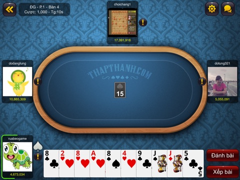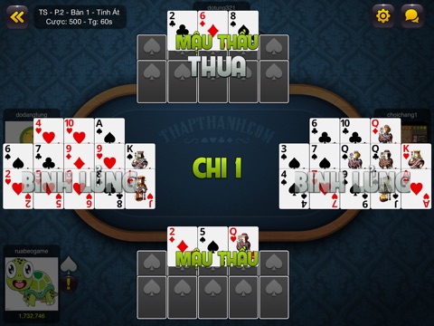 Game bài Thapthanh bao gồm các game: Chắn, Tiến Liên miền Nam, Binh, Tá lả (phỏm), Sâm, Xì tố, Cờ úp, Cờ tướng...!