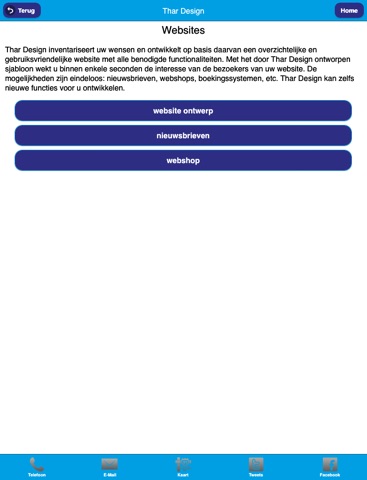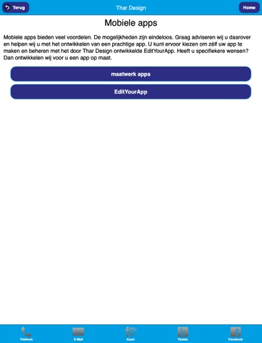 Thar Design is hét bedrijf voor al uw internetwensen. In overleg met u ontwerpen en ontwikkelen wij uw website, webapplicatie of mobiele app. Wij hebben alle software, kennis en creativiteit in huis om uw ideeën om te zetten in het gewenste resultaat. Daarnaast geven wij advies over diverse internet gerelateerde zaken.