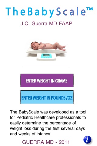 The Baby Scale app is a simple app that assists the health care professional in making a fast and accurate calculation of an infant’s day to day weight loss displayed as a percentage of birth weight loss.