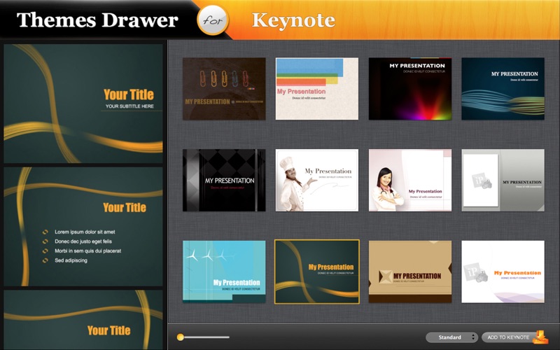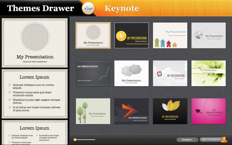 ** Themes Drawer for Keynote is a collection of themes for Keynote application.