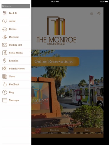 The Monroe Palm Springs features both standard room and suite accommodations; for your convenience in all guest rooms we offer single serve coffee makers (with Wolf Gang Puck Coffee Selections and Organic Teas), in room safes, refrigerators, alarm clocks and full size 1875 watt hair dryers. Iron and ironing boards are available upon request. All rooms are 100% smoke free.