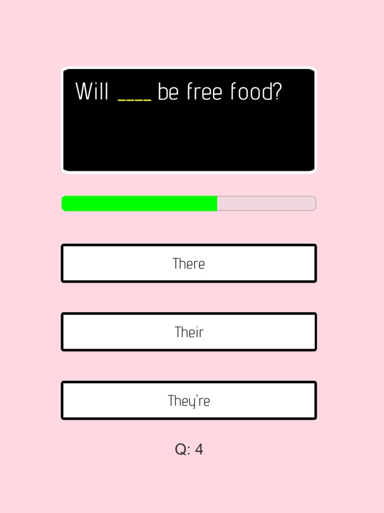 "There Theyre Their" is an educational game designed to help you properly identify which of the three words in its title to use in which situations. Think youve already mastered these words? What if we only gave you a few seconds to choose the right one? Now it becomes a game even college English professionals will find challenging!