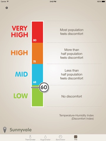 Application simple dutilisation et exacte dans ses données. Le plus, cest quelle donne Le degrés dhygrométrie, la pression atmosphérique et un indice de confort corporel fonction du couple température /hygrométrie !