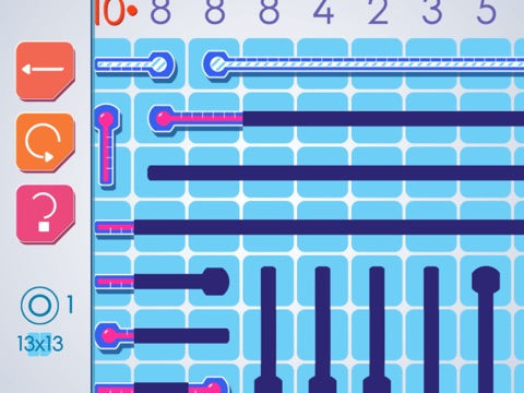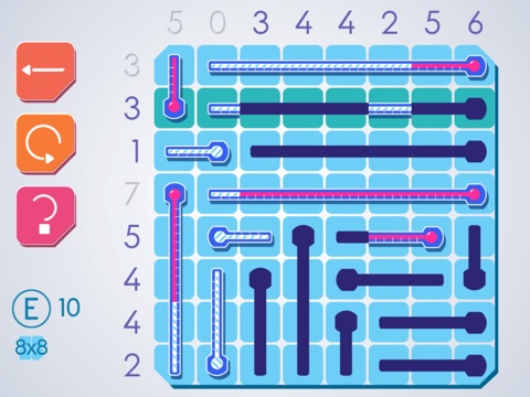 Grids of Thermometers delivers the relaxed fun of a pen-and-paper logic game right to your fingertips. In each level, you fill a grid of thermometers with mercury. Numbers on the grid edges tell you how many cells must be filled in each row and column.