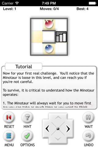 The Theseus game engine provides complete control over move history, allowing you to undo all moves. Youll need it, since outmaneuvering the Minotaur can be quite a difficult task. Each level will reward you with that "Ah-hah!" moment when you discover the trick to trapping the Minotaur in the various nooks and crannies of the maze.