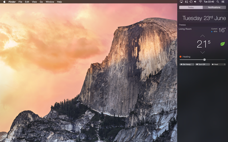 I have looked for something like this directly from Nest but funny enough founf it here at MAS. The widget works nice, but still lacks 0.5C adjustments. I understand from the developer this is in the works soon. I also asked for energy report and scheduling but apparently Nest doesn’t make this available to the develpers. One this is for sure, the developer is insanely fast in reacting to tweets and emails and went out of his way to help me troubleshoot when I couldn’t get the widget to see my Nest Thermostat. It turned out to be an issue with the firewall at my work network set up. Once I tried a different network all worked like a charm.