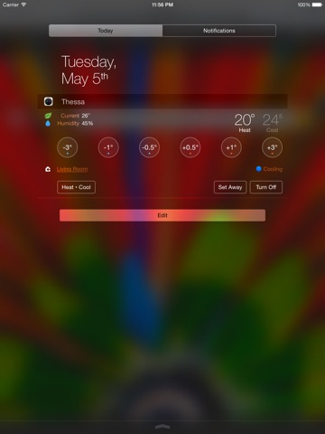 Change the temperature of your Nest Learning Thermostat™ with just a few taps and without ever opening an app. Thats the beauty of Thessa, an incredibly easy to use widget that allows you to control your Nest Thermostat, right from Notification Center on your iPhone or iPad.