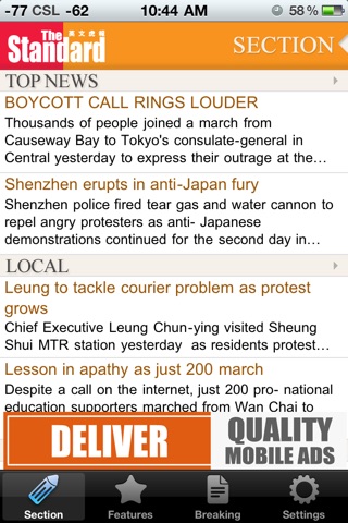 The Standard is really surpassing SCMP in innovation. Apart from the classified, getting access to the 1st free English newspaper is easier now with iPad & iPhone apps. I bought an iPad partly because I could read the paper as its not easy to get the paper in my area. This app is not as accessible as the iPad version but considering the screen limitation, organization is good although it will take a bit of navigation. If you know what you want to read, this is the mobile news app for HK English readers.