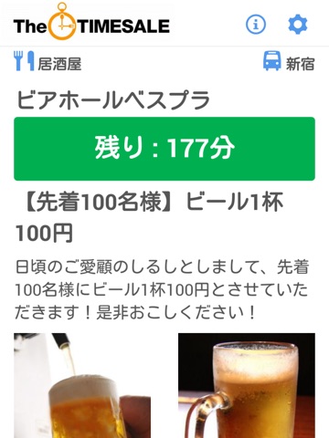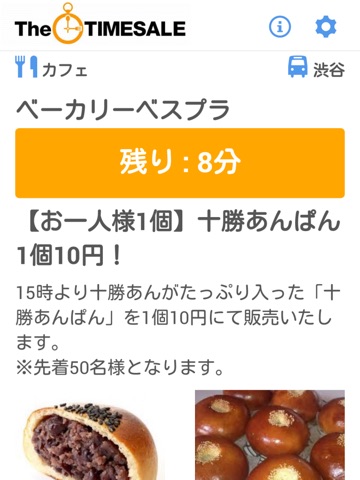 受け取ったタイムセール情報には、タイムセールの内容や写真、残り時間が記載されていますので、