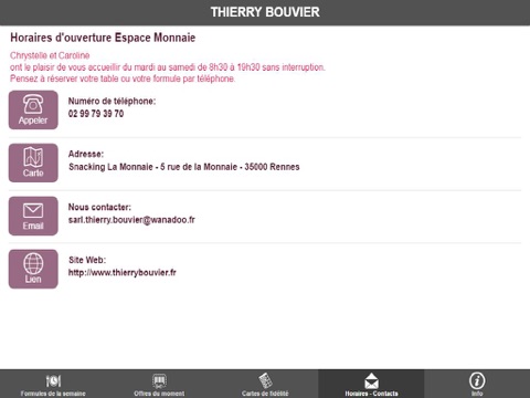 - Découvrez dans la page Infos, les périodes festives, les nouveautés pâtissières de la semaine, l’actualité du concept de l’Espace de la Monnaie.