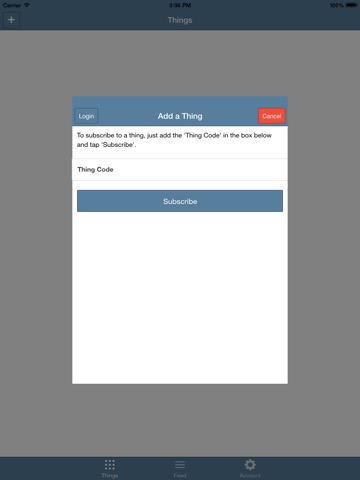 The Thingdom mobile app allows you to stay connected to all the things in your life. Once you receive a Thingdom pairing code from an application using Thingdom, simply enter the pairing code into the Thingdom app. You will instantly be signed up to receive notifications and access the current state of that thing from anywhere in the world!