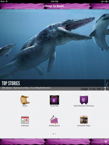 The official Things Go Boom!! app keeps you up to date not only with your guild news but also popular gaming feeds, keep you notified with guild announcements, provide current guild member information and calendar.