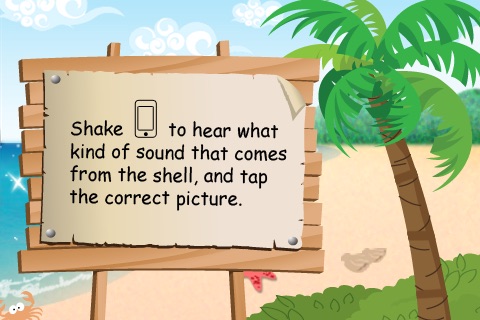 There are cute graphics that match the game play. If the kids missed hearing the sound, shake the phone to play the sound again.