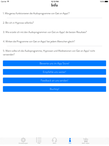Hypnose ist prinzipiell für alle körperlich und geistig gesunden Menschen geeignet. Sollten Sie in therapeutischer Behandlung sein, z.Bsp. aufgrund einer Depression oder Psychose, und / oder verschreibungspflichtige Medikamente einnehmen, halten Sie bitte vor Anwendung dieses Programms Rücksprache mit Ihrem behandelnden Arzt. Das Programm ersetzt keine Behandlung bei krankhaften Angststörungen.