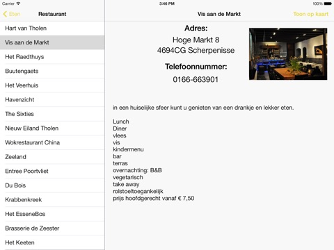 Met de Tholen app heeft u altijd een overzicht van de leukste locaties op het eiland Tholen. Het maakt niet uit of u op zoek bent naar een restaurant, camping, fietsenmaker of een VVV-kantoor: de Tholen app geeft u altijd de juiste gegevens over deze locaties!