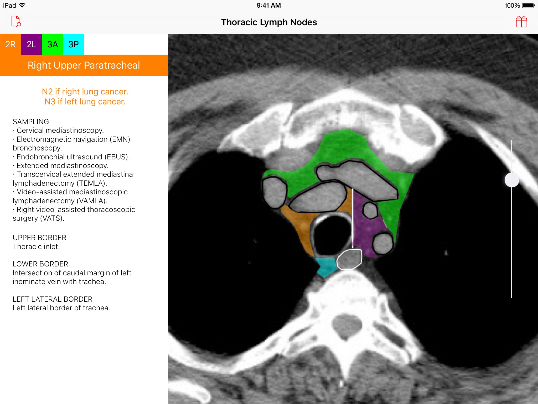 Introducing the Thoracic Lymph Node Map app, an elegant tool that provides healthcare professionals with a color-coded CT lymph node map adapted from the International Association for the Study of Lung Cancer (IASLC) lung cancer project.