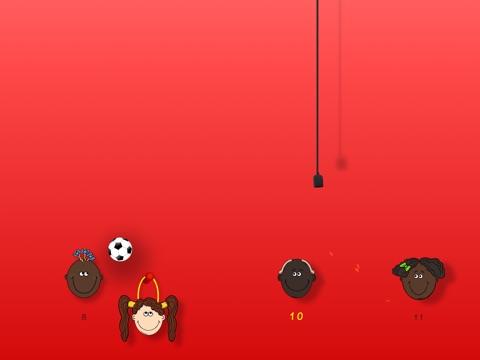 Thousand heads attached to thousand rubber bands. Pull down to knock the ball from head to head.