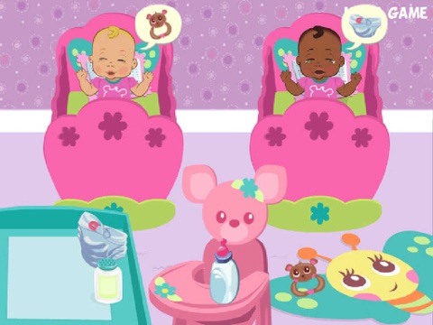 When a baby starts to cry, move it to the station shown in the thought bubble above its head.