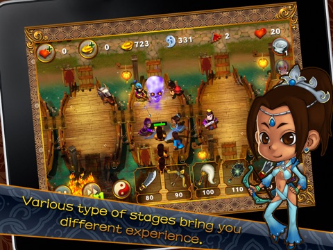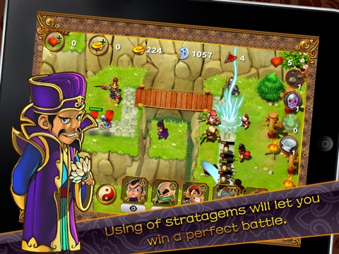 During game play, you need to send your heroes and armies wisely into the battlefield to defend the intruders. By upgrading your heroes, purchase powerful items, you will find the battles can actually be much easier. The newly added secret weapon - Stratagem - give you the ability to use fierce natrual powers like tornado and thunder. In stages with massive maps, enemy units and heroes with distinguish characteristics will show up and challenge you. Everything is depending on your wisdom and strategy.