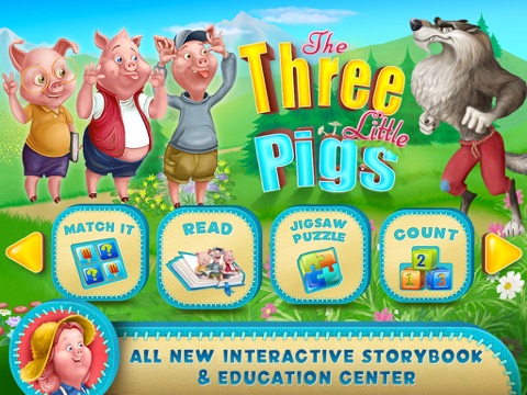 The Three Little Pigs is more than just a storybook. This interactive production provides endless hours of entertainment, through its beautiful storyline, animated scenes, and engaging interactions. In addition to being entertained, children can play educational games like, Jigsaw Puzzles, Paint, Memory Match & more! The Three Little Pigs is ideal for children ages 2-6 and fun for the whole family!