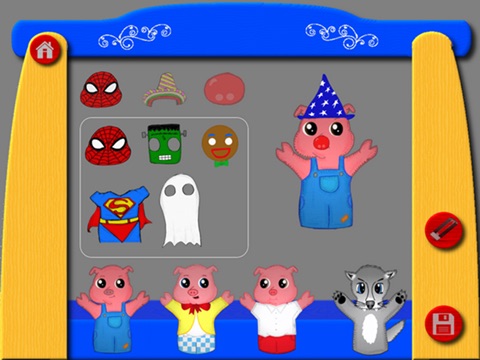 ★ Costumes for puppets. Dress up the puppets and have them perform the show in their new costumes!