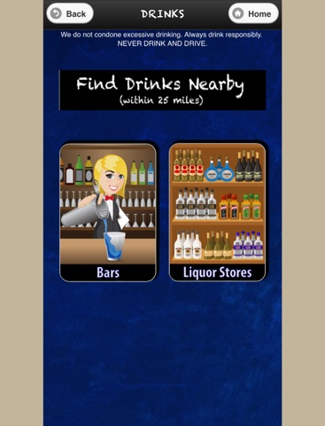 Drink Finder - Allows you to find local bars and liquor stores within a 25 mile radius of your location.