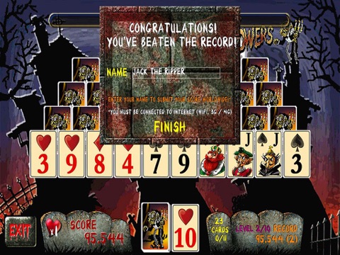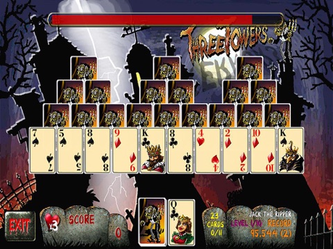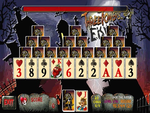 Funny solitaire game with a lot of special effects. You have to clear out all the cards from the board as quick as you can. Watch out! There are ghosts in your vicinity!