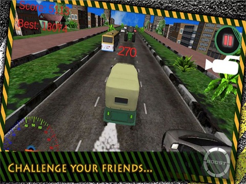 Three Wheeler Drive Experience is one of the best 3D Rickshaw racing games. You will try to reach the maximum score / distance and become the BEST THREE-WHEELER DRIVER in the Global leader boards.