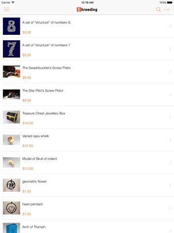 Threeding App is fully synchronized with our web version. The app is designed to allow users to easily search and explore all 3D printing models available at Threeding. When viewing 3D models the user can scroll through lovely screenshots, read about the models and share them in the major social networks. Buying and/or downloading of 3D printing models are available through a link to the mobile version of the platform. Uploading of 3D printing models will remain only on web.