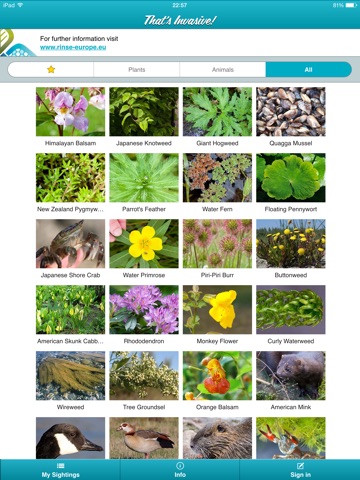 We need your help to turn the tide on the alien invasion! Invasive non-native species are threatening our wildlife and economy, but without accurate and up-to-date information on their distribution effective control of these species is impossible. With ‘That’s Invasive!’ you’ll be able to identify and record 41 different invasive species faster than ever before by utilising your phone’s in-built GPS and camera. ‘That’s Invasive!’ contains all the information you need on the ID features, ecology and impact of these species – all for free and in your pocket!