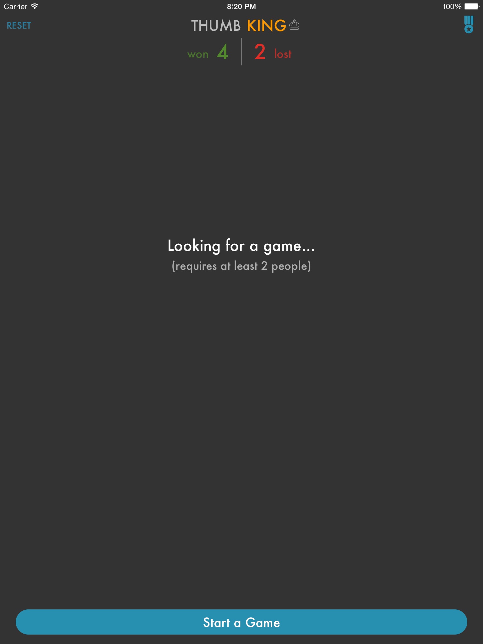 Start or play a wireless, multiplayer game of Thumb King with your friends and family. If no one else is around, use the new single player mode to test your thumb skills against the computer.