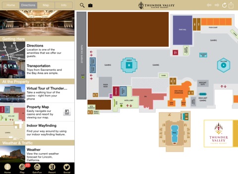 Now you can access all the fun and excitement of Thunder Valley Casino Resort wherever you are with the official mobile app! This action-packed app connects you instantly to the latest promos, exclusive offers, event listings, room booking and dining information, GPS and indoor mapping, play-for-fun slot games and much more!