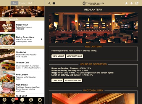 Planning a stay at Thunder Valley? This app makes it easy for you to browse through the rooms, view amenities and book reservations instantly while you’re on-the-go.