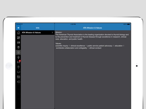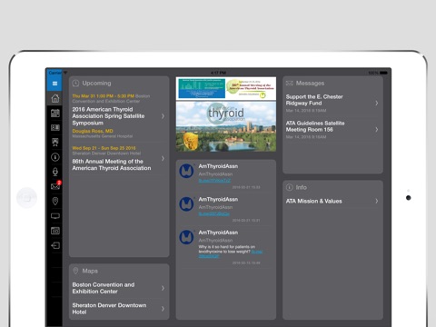 The ATA mobile app, Thyroid Connects ATA, will provide a place for ATA members and ATA event attendees to receive current updates and information on the activities and events of the American Thyroid Association. The ATA is a unique society providing thyroid education, awareness, and information to its 1,700+ physician and scientist members from 43 countries around the world. ATA leaders, volunteers, and members have a wealth of expertise and are mission-driven to make the world a better place for patients suffering with thyroid disease and thyroid cancer. The mobile app will serve as an extension of the ATA and as a key communication tool to provide updates on important organizational events, research, awareness, and education efforts. Thyroid Connect will also provide a means for members to connect in real-time with the organization, fellow colleagues, and event participants 24 hours a day!