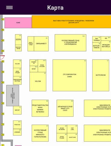 Навигация: Карта выставки, которая поможет вам сориентироваться на местности и найти нужный стенд.