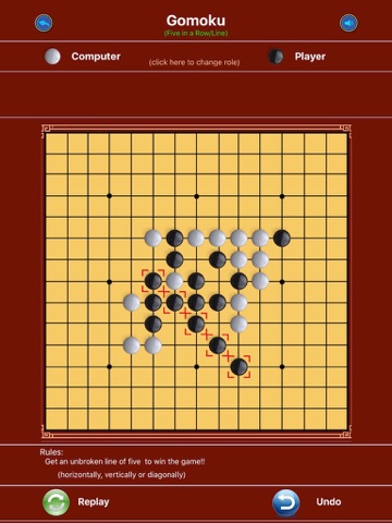 - Five row mode: who first get an unbroken 5 dots in 15*15 grid wins the game