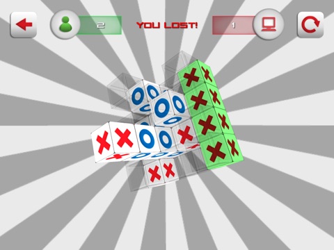 Do you remember one of the most fascinating games from childhood "noughts and crosses"? Experience it again in our mobile device! But be attentive: this time a 3-D cube serves as a game field, what makes it more difficult and more exciting! You can play with a computer or with your friend, making moves in turns. Enjoy the game!