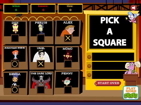 Test your knowledge in this fast paced Tic Tac Toe Trivia question game show with a huge variety of categories to choose from in many different categories. And its filled with cartoon characters! Just like Jeopardy but more animated. Answer correctly to place an X or an O on the game board and get one step closer to victory! Get three in a row and you get Tic-Tac-Toon! All along the way youll be cheered on by different animated characters in the boxes. Its like Hollywood Squares meets Jeopardy meets Looney Tunes all in a super silly Trivial Pursuit like game of skill and chance.