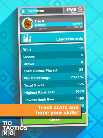 Challenge friends and strangers to increase your rank and become the ultimate Tic Tactician!