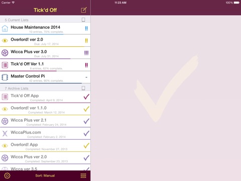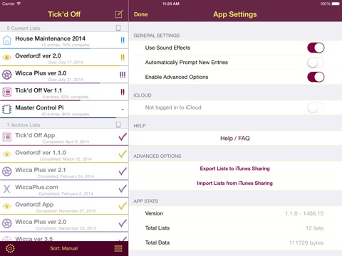 Tick’d Off is a straightforward list management app, designed to allow you to maintain all your tick-lists (aka check-lists, to-do lists) in one place.