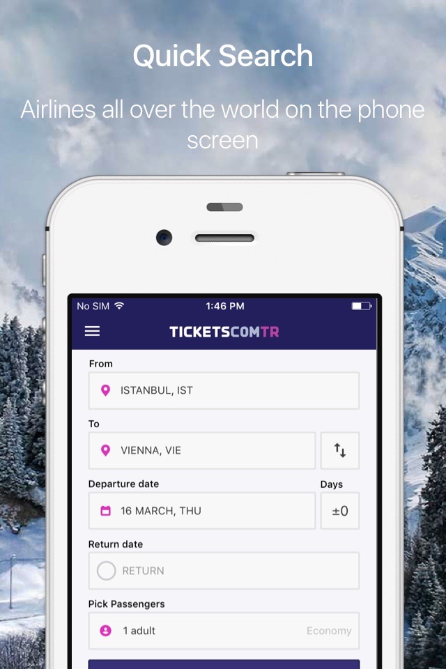 Tickets.com.tr mobile application helps to effectively search for and buy air tickets for the most bargain prices. Its quick, simple, and easy.