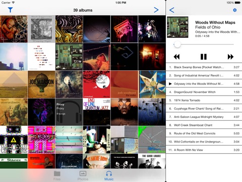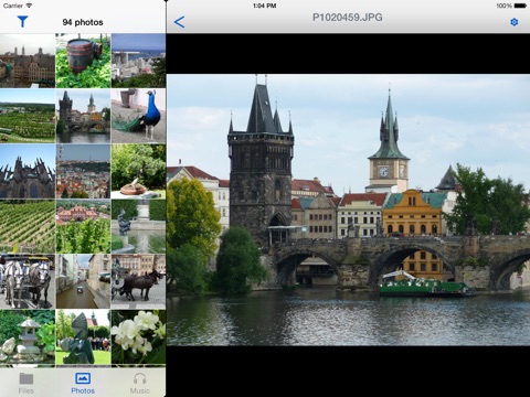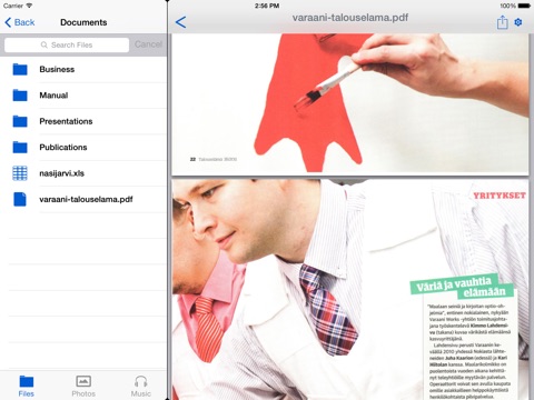 The application has a photo browser and an in-built media player for music and videos. All photos taken with your iOS device can be synchronised to Tiedostoholvi automatically. The application also supports viewing of PDF documents.