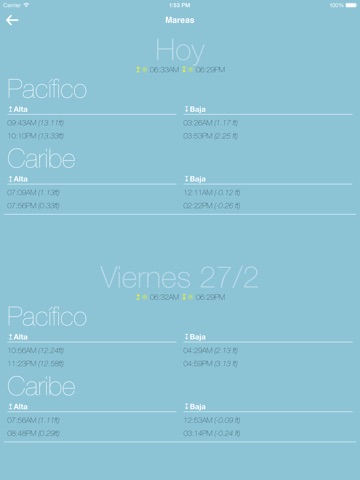 * Tablas de mareas del Pacífico y del Caribe (marea alta, marea baja)