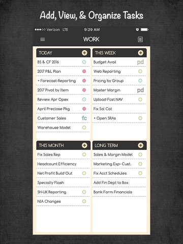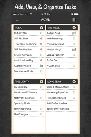 Need a to do list with the ability to handle your busy life? Stop constantly rewriting tasks and transition from static line item lists (or even paper!), to a dynamic quadrant based solution. Can be used as a to do list or an organizational tool. To-do & shopping lists, restaurants, ideas, or custom.