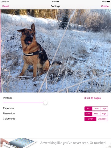 Tileprint is easy to use. Simply choose an image from your gallery, customise settings, and click Create. It will take some time to process the image depending how large the poster will be.