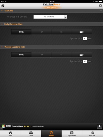 Overtime Pay: you may select 1.5x, 1.75x, or 2x in the Overtime Tab.