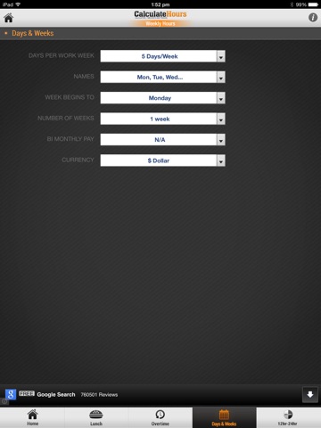 Set your number of work days per week, and the day your week begins for paycheck processing.
