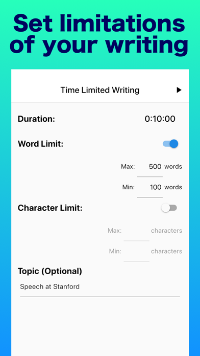 Unlock the power of your English writing skills with our app! Ever found yourself frustrated by intrusive word suggestions while trying to craft the perfect essay? Say goodbye to distractions with our unique solution. Our app ensures a seamless writing experience by eliminating pesky word suggestions, allowing you to truly showcase your English prowess. Plus, its not just about writing freely; our app helps you prepare for timed exams like TOEFL, TOEIC, and IELTS by imposing time limits, mimicking real test conditions for optimal practice!